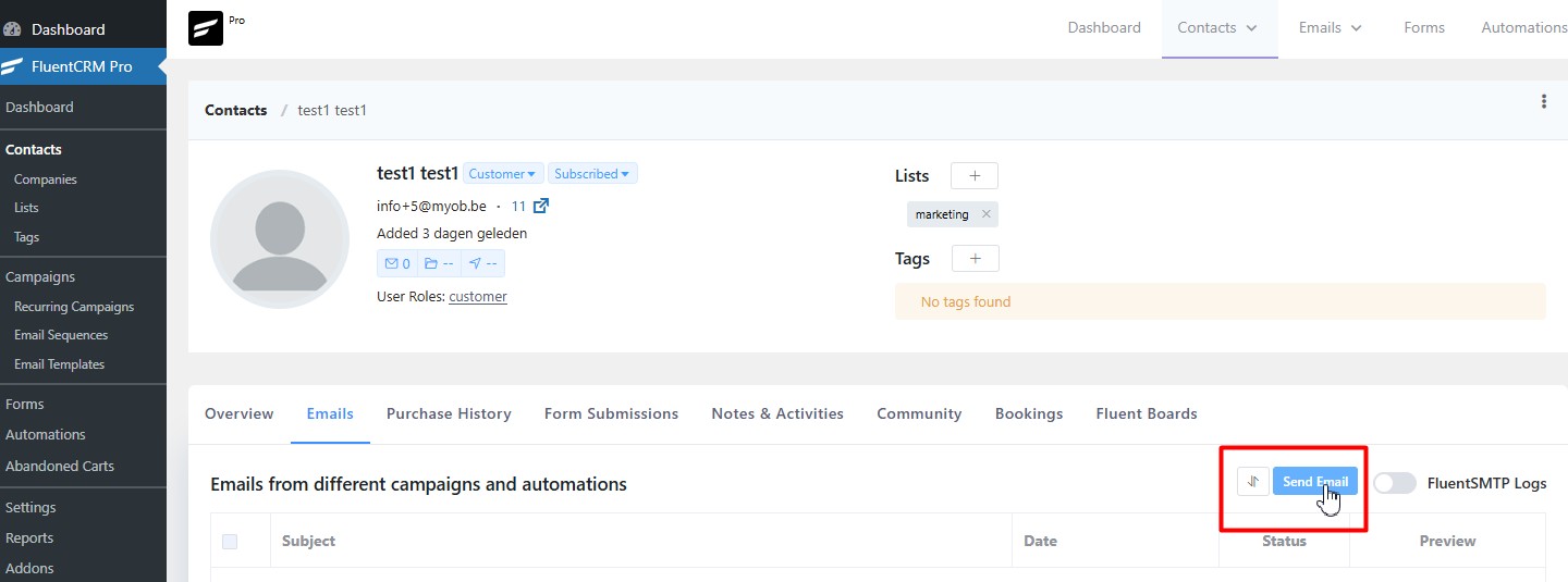 Hi, in FluentCRM it is possible to send a private email to a contact.